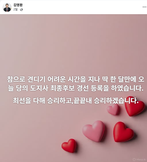 김영환 충북지사 페이스북 게시물.