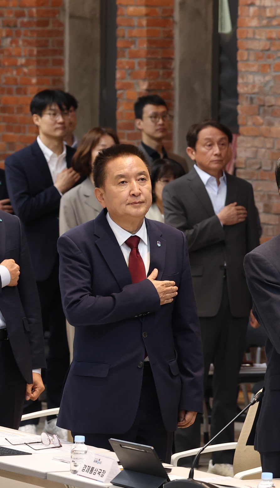 23일 김영환 지사가 도청에서 열린 행사에 앞서 국민의례를 하고 있다./충북도 제공