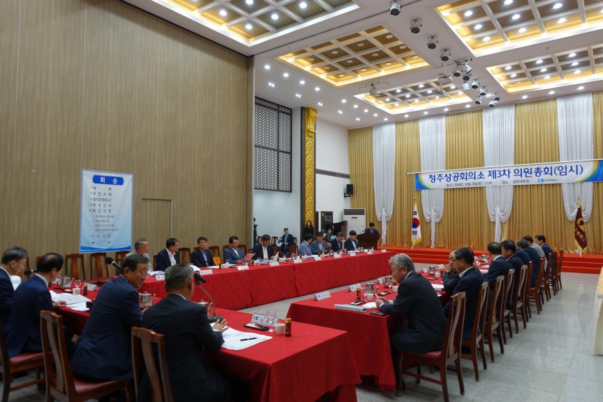 청주상공회의소(회장 이두영)는 8일 낮 11시 청주의 한 식당에서 임시의원총회를 열고 상의회관 이전방안에 대해 논의했다.