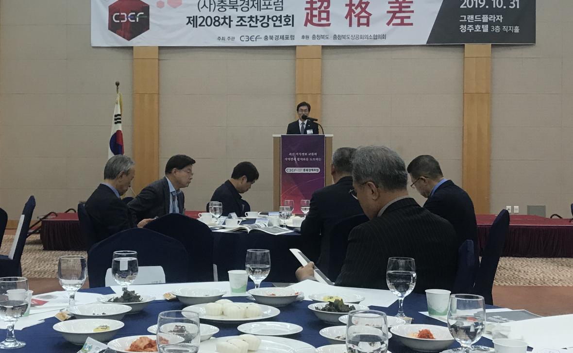 이 정무부지사는 31일 아침 7시 그랜드플라자청주호텔에서 열린 충북경제포럼(회장 차태환) 제208차 조찬강연회에서 축사를 했다.