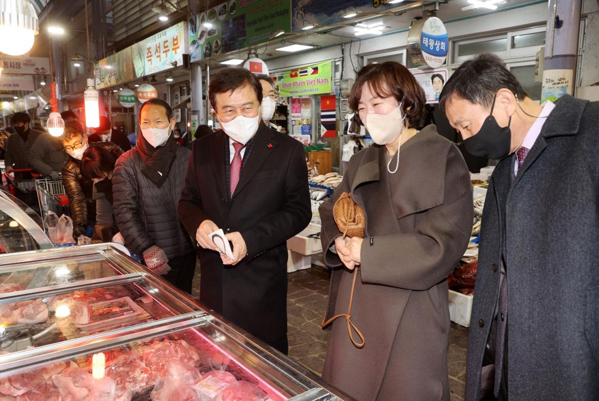 설을 앞두고 각급 기관단체에서 전통시장 설맞이 장보기에 나섰다.