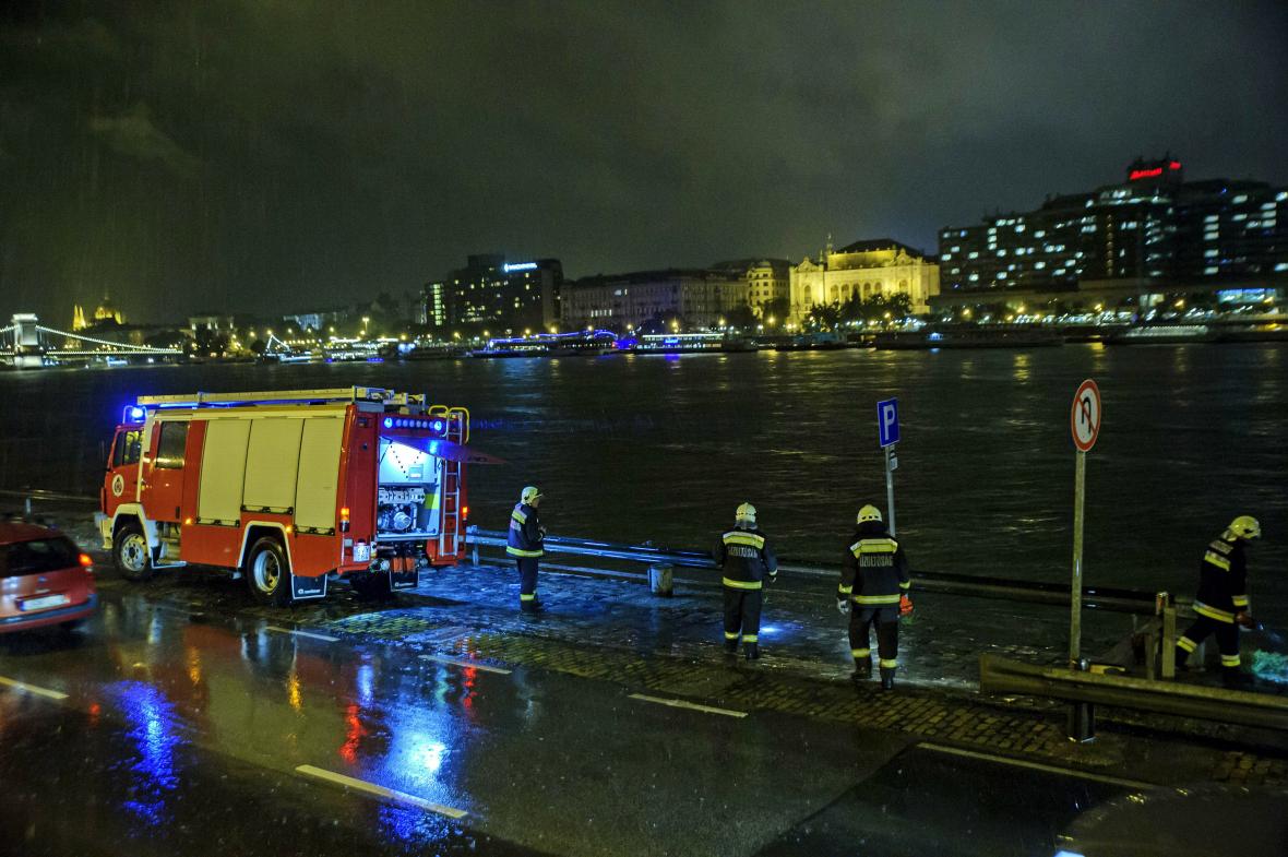 헝가리 부다페스트 다뉴브강에서 한국인 관광객 등이 탑승한 유람선 '하블레아니'가 침몰해 구조대가 다뉴강 둑에서 수색작업을 하고 있다./뉴시스