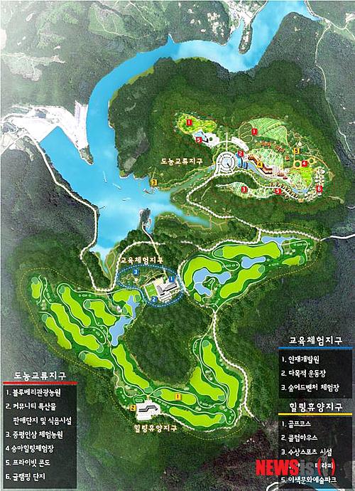 이달 말부터 18홀 골프장을 운영하고 수상레저(제트보트 2대, 요트 2대, 드래곤보트 12대), 루지(2개 코스 2.85km), 한식당(400석)도 가동한다.