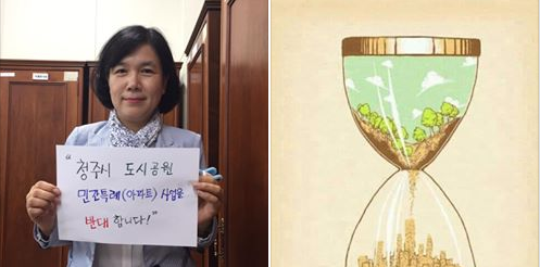여기에 페이스북을 중심으로 도시공원 민간공원 개발반대 챌린지 사진을 올리는 캠페인이 펼쳐지고 있어 관심을 모으고 있다.