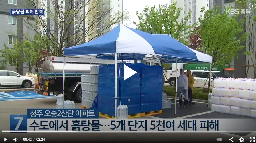 허 의원은 “지난 달 13일부터 5일간 오송읍 2산단 일대 수돗물에서 탁수가 나와 약 6,875세대가 불편을 겪었다”면서 “이 지역은 지난해 12월 12일부터 17일까지 6일간 이미 탁수 현상으로 5,500가구의 주민들이 불편을 겪었던 지역”이라고 밝혔습니다.