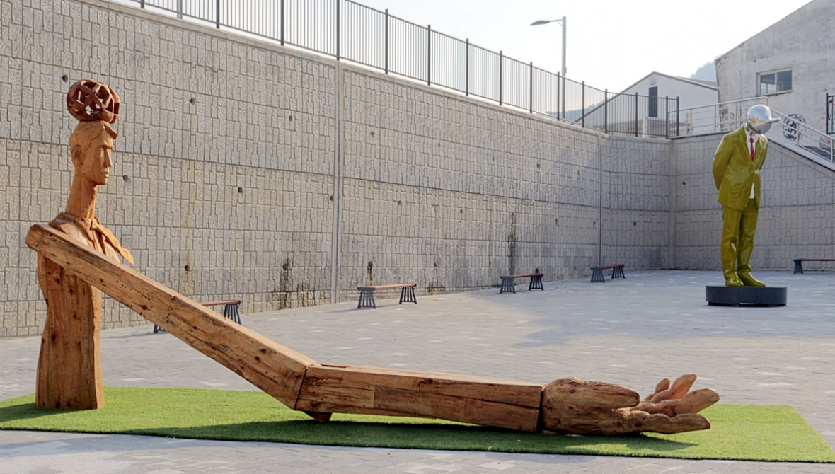 청주문화제조창C 열린광장에 설치돼 화제가 되고 있는 청주공예비엔날레 전시작 '피노키오의 생각'