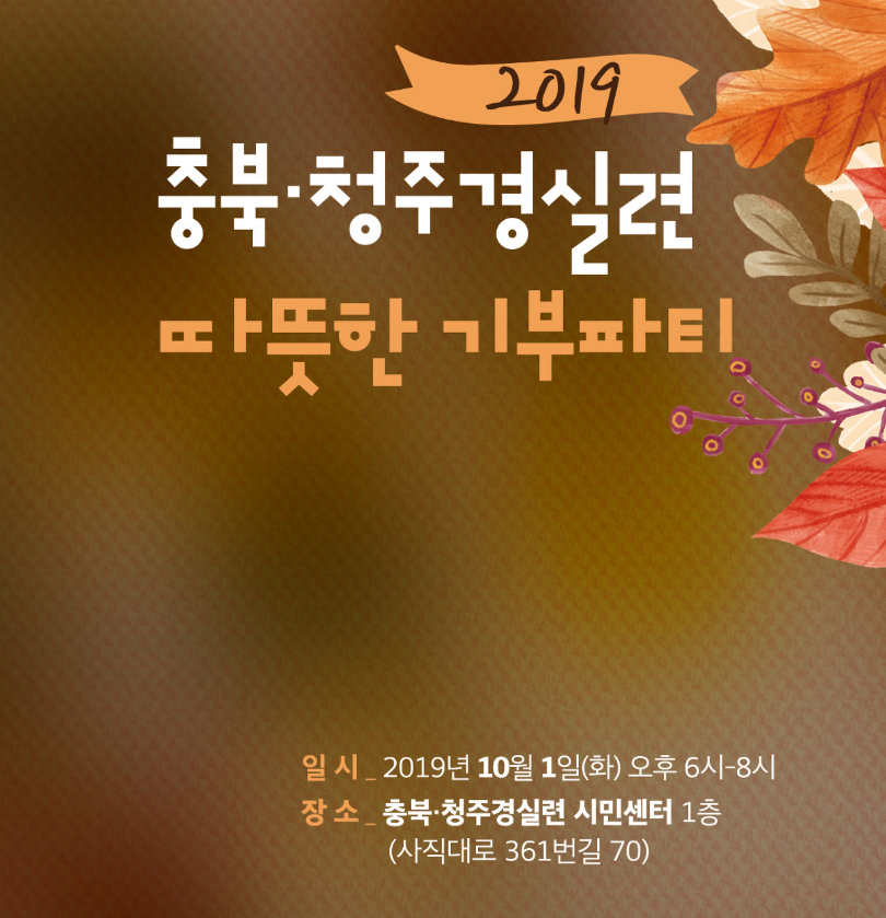 충북청주경실련(공동대표 현진 김준태 신철영) 따뜻한 기부파티가 다음달 1일 오후6시부터 청주경실련 시민센터에서 열린다.
